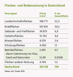 Gewonnen werden mineralische Rohstoffe lediglich nachfragegerecht. Der jährliche Flächenbedarf dafür ist im Vergleich zu anderen Nutzungen verschwindend gering. Der aktuell genutzte Abbaubereich von mineralischen Rohstoffen in Baden-Württemberg entspricht mit 7.200 Hektar lediglich 0,2 % der gesamten Landesfläche.