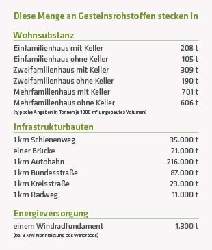 Jeder Bundesbürger verbraucht in seinem Leben statistisch gesehen mehr als 600 t mineralische Rohstoffe.